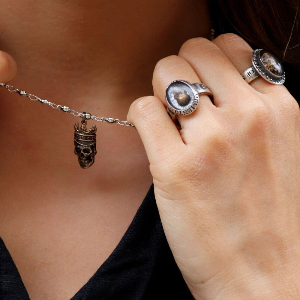 Collares de calavera para mujer y hombre en plata 925. Nuestros maestros artesanos fabrican todas nuestras piezas a medida, por lo que el plazo de entrega será de 20 días, salvo bestsellers, novedades y outlet, que sí tienen entrega inmediata.