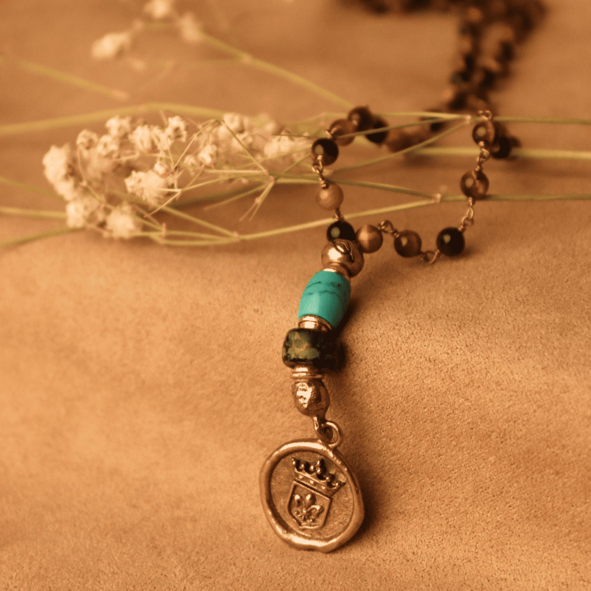 Material: Ojo de tigre, turquesa, bronce