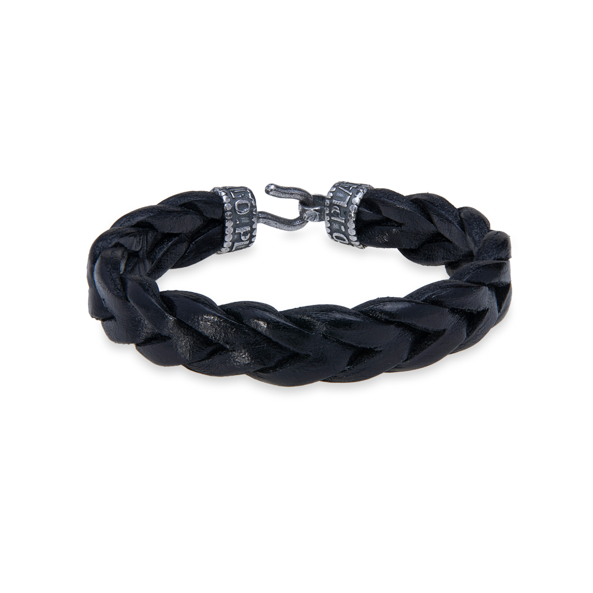 Pulsera de cuero negro trenzado con cierre de Plata 925.