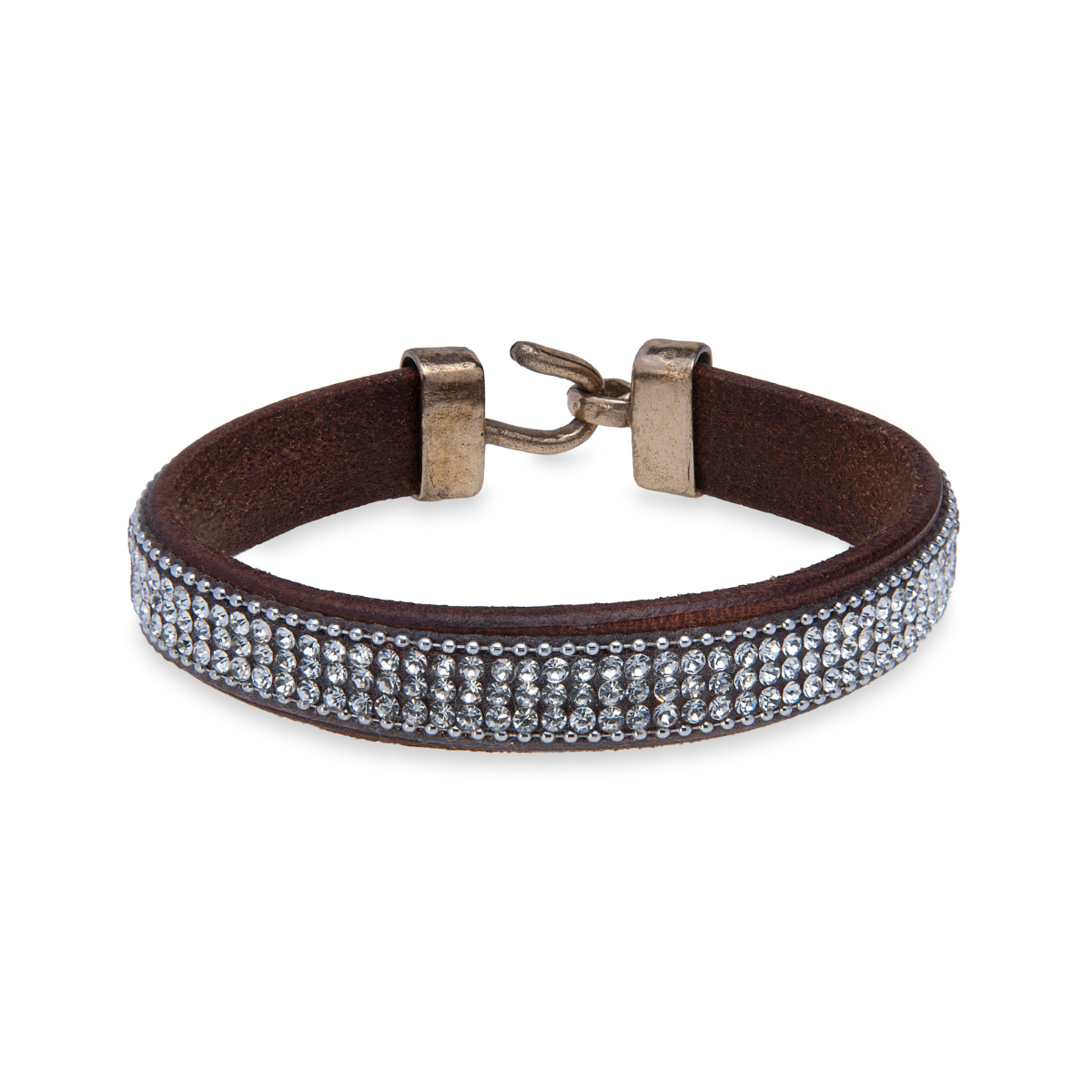 La pulsera Zinnia es el equilibrio perfecto entre estilo y sofisticación. Confeccionada en cuero plano de 1 cm, esta pieza destaca por su elegante pasamanería plateada y brillos, que añade un toque cálido y natural.