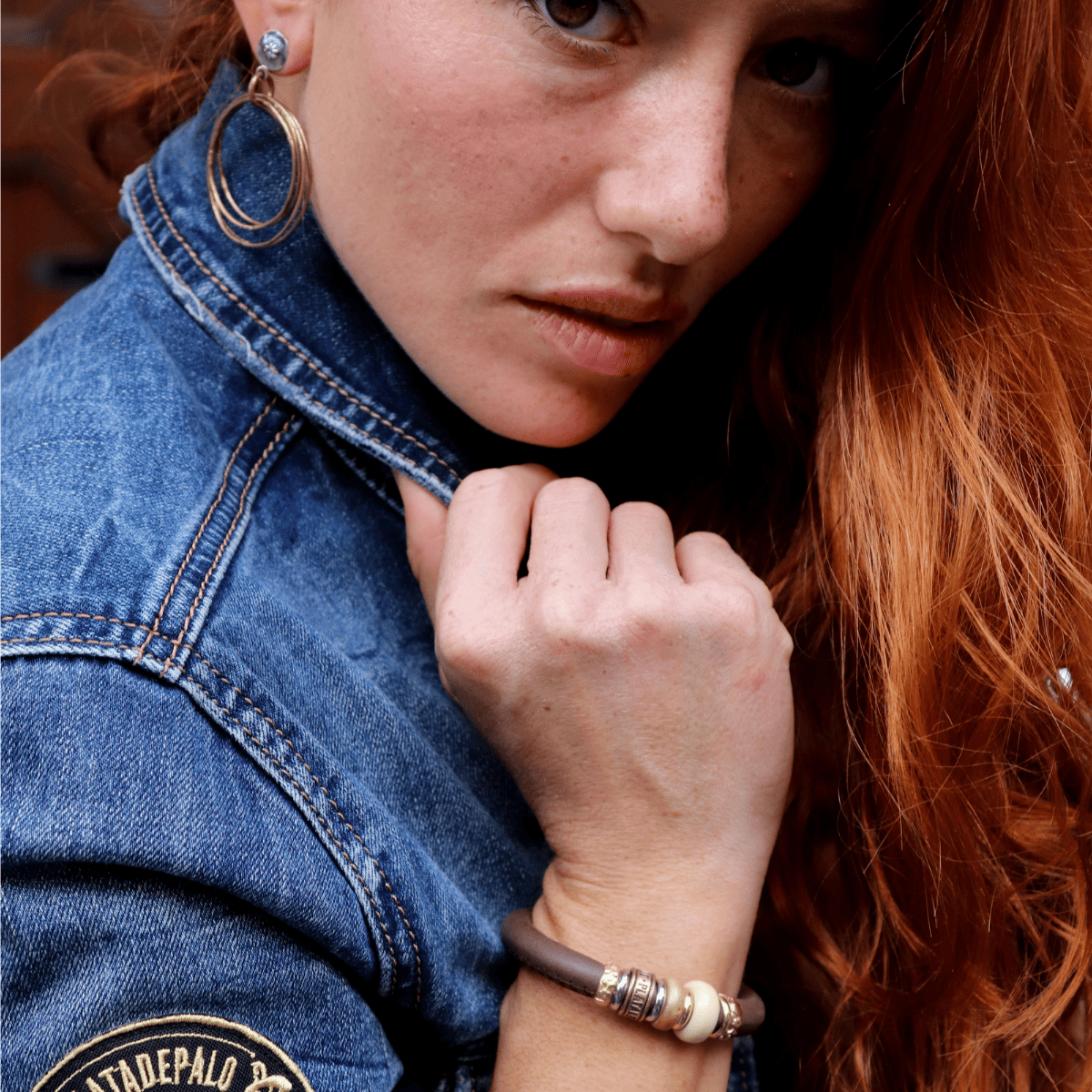 Pulsera mujer Jessie de cuero con resinas marrón y beige