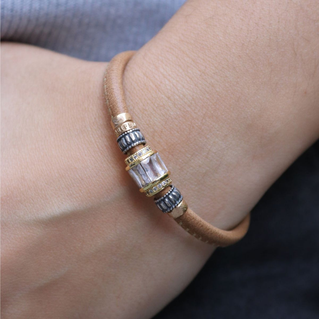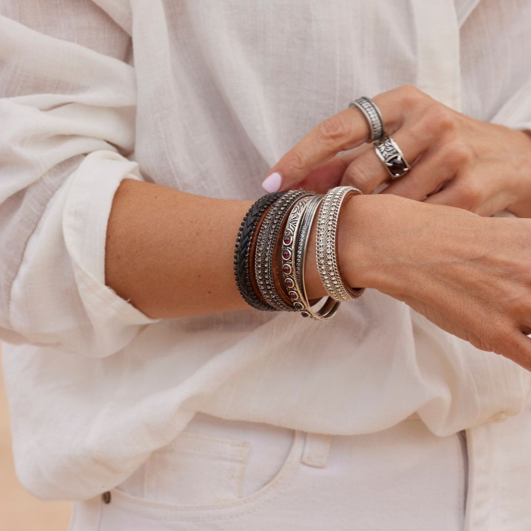 Pulseras de mujer en plata 925, cuero, circonitas y nylon, hechas a mano en España, con diseños únicos que combinan estilo, comodidad y durabilidad.