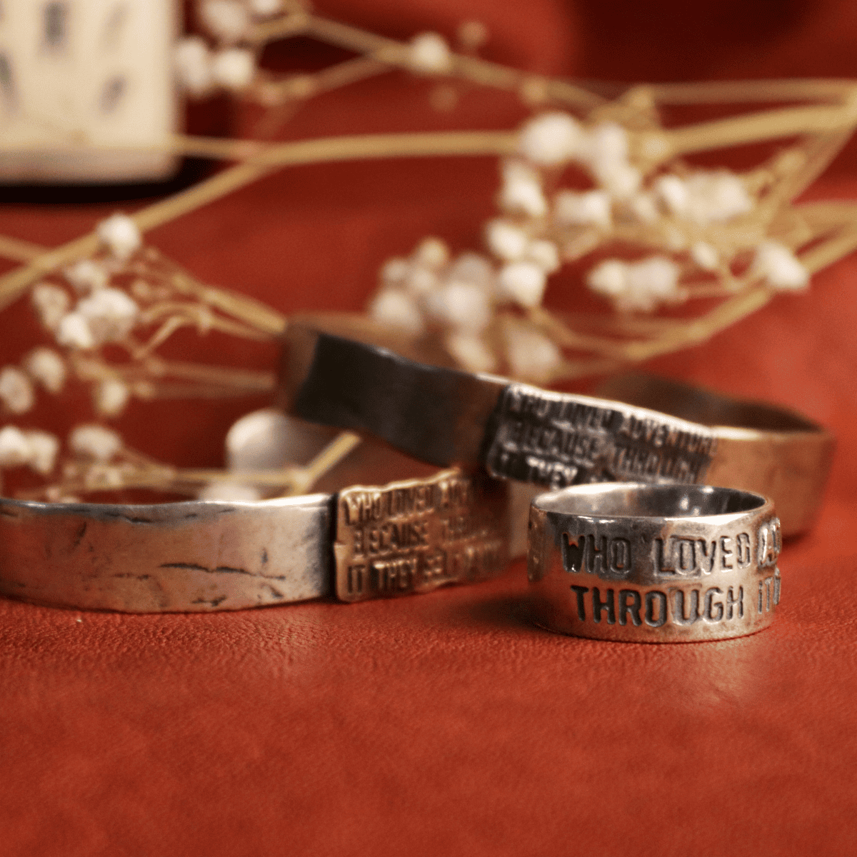 Warnung: Bei einigen unserer Schmuckstücke, bei denen Bronze in direkten Kontakt mit der Haut kommt, kann es vorkommen, dass die Bronze bei manchen Menschen und abhängig vom pH-Wert ihrer Haut grünliche oder dunkle Flecken auf der Haut hinterlässt.