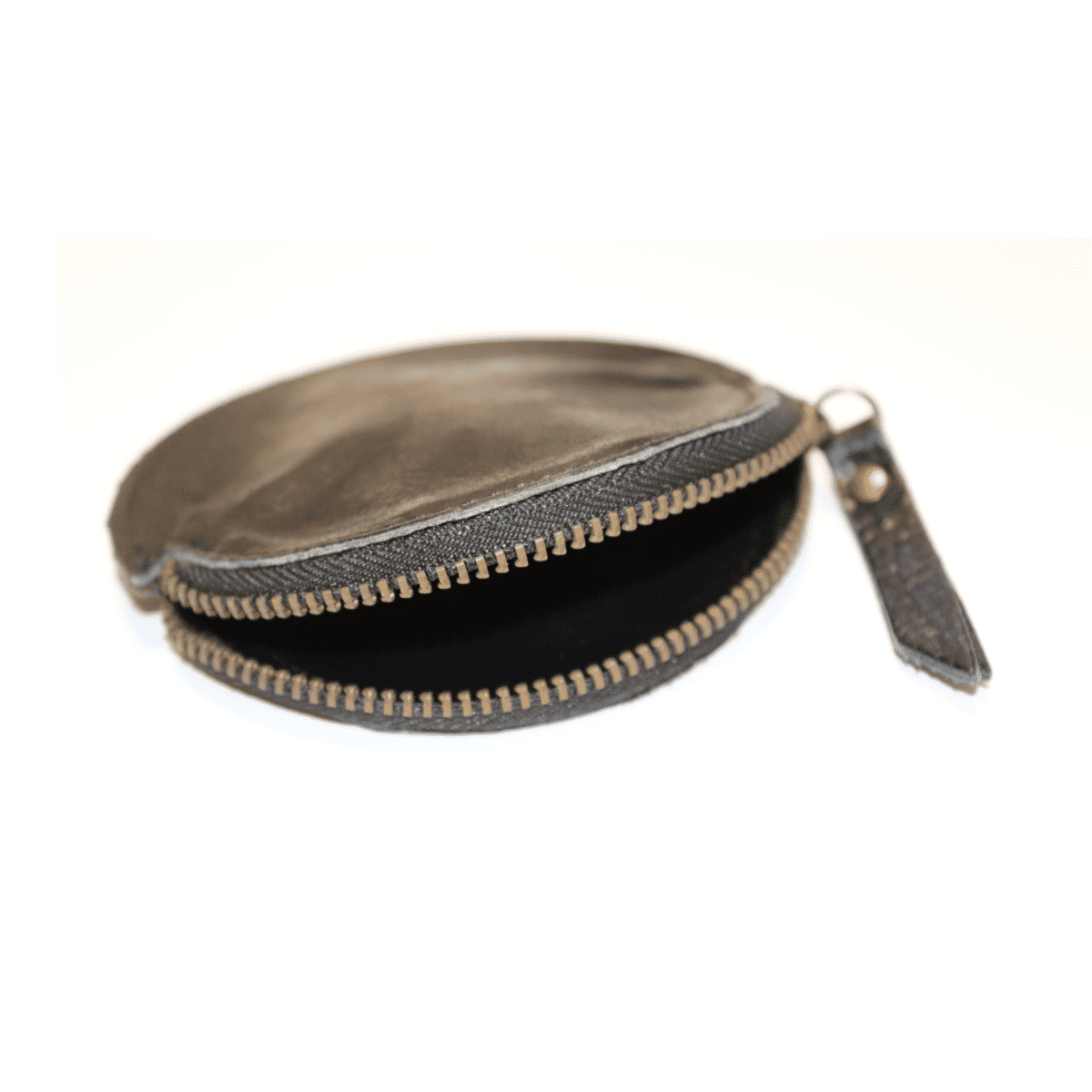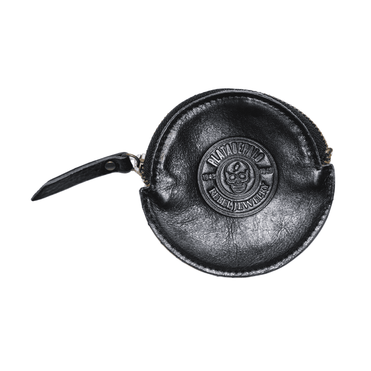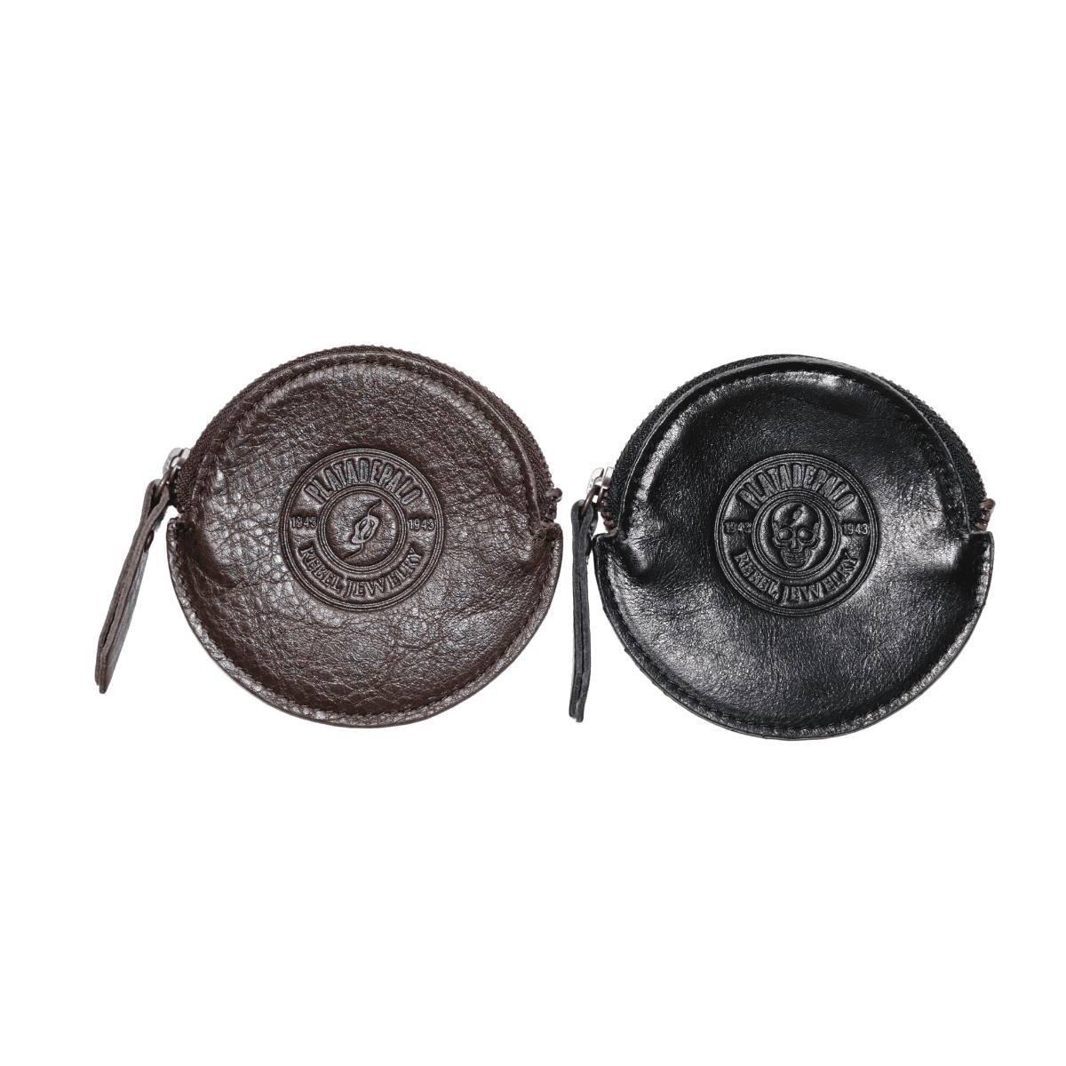 Geldbörse / Portemonnaie aus braunem Leder, mit Reißverschluss, Innenfach für Karten und Münzen. Abmessungen 11x8 cm. Außen mit dem PLATADEPALO-Siegel gekennzeichnet.