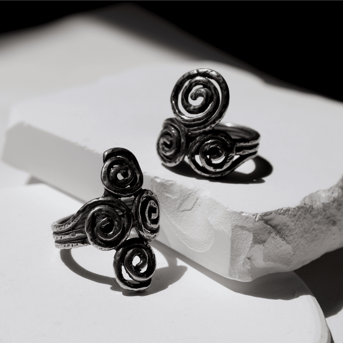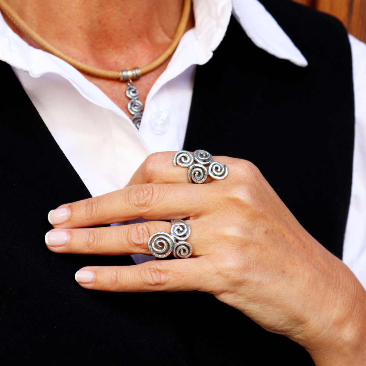 Kuraiho Damenring mit drei 925 Silberspiralen
