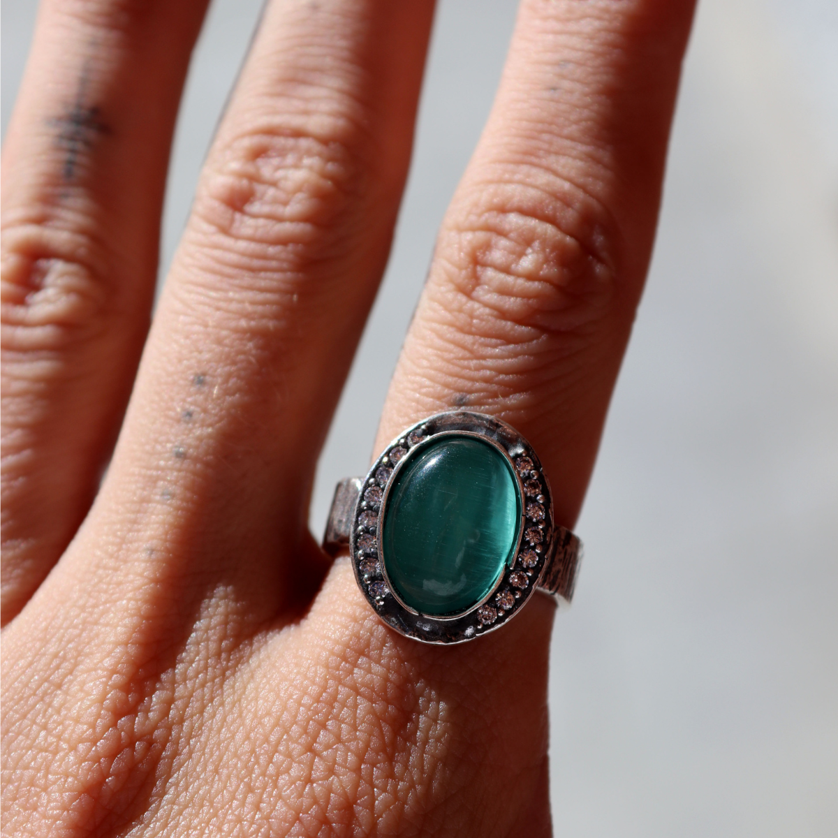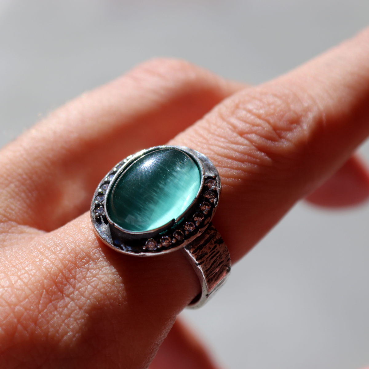 Meikai Damenring aus 925er Silber und türkisfarbenem Stein