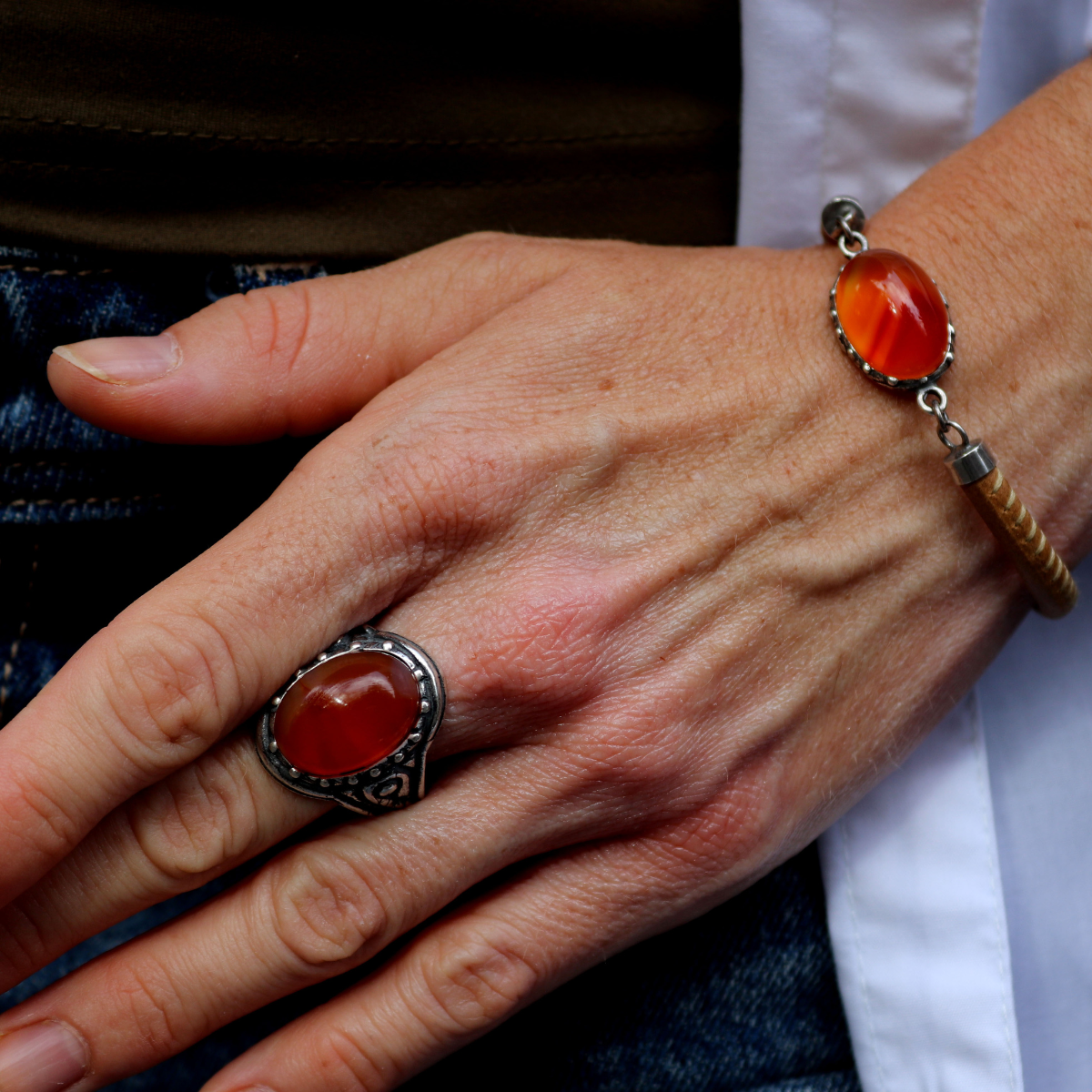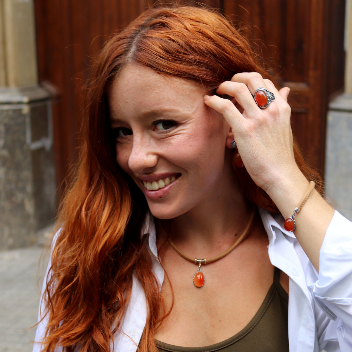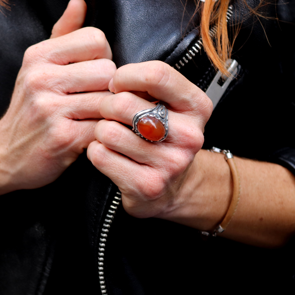 Damenring Rin aus 925er Silber mit hochwertigem ovalem Karneolstein.