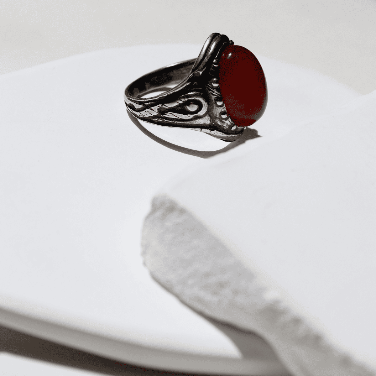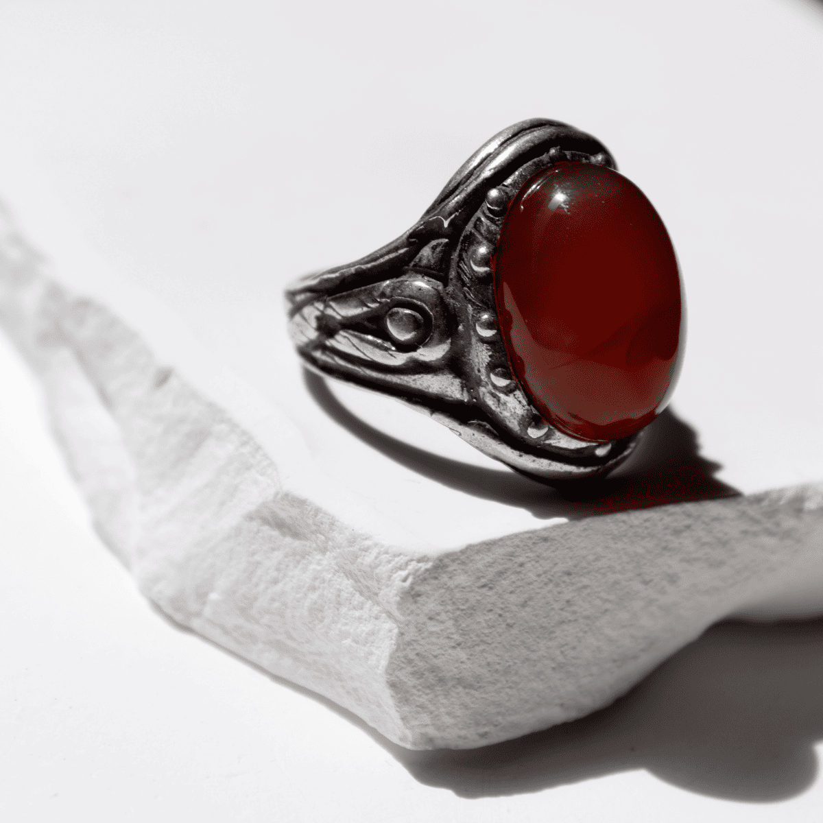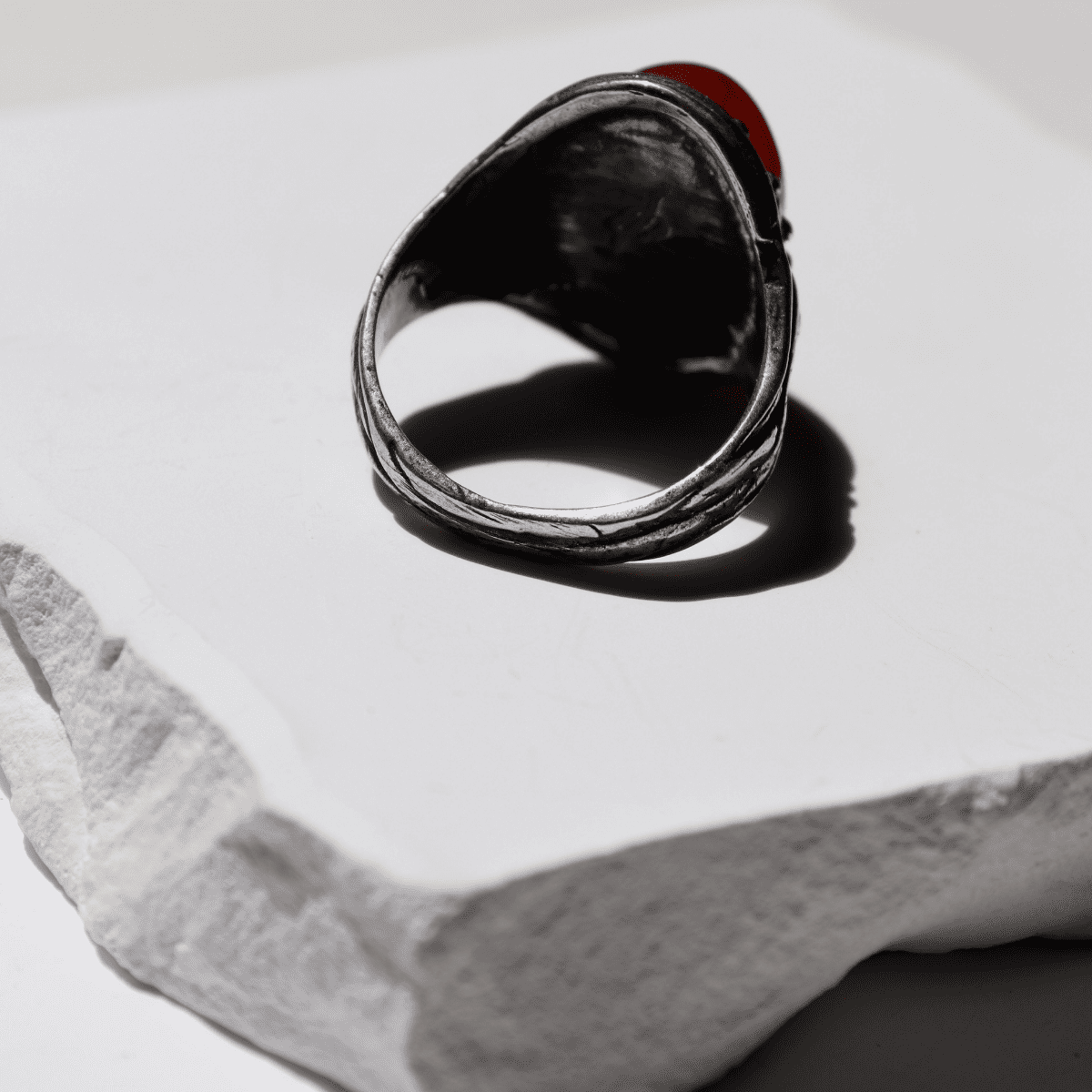 Damenring Rin aus 925er Silber mit hochwertigem ovalem Karneolstein.