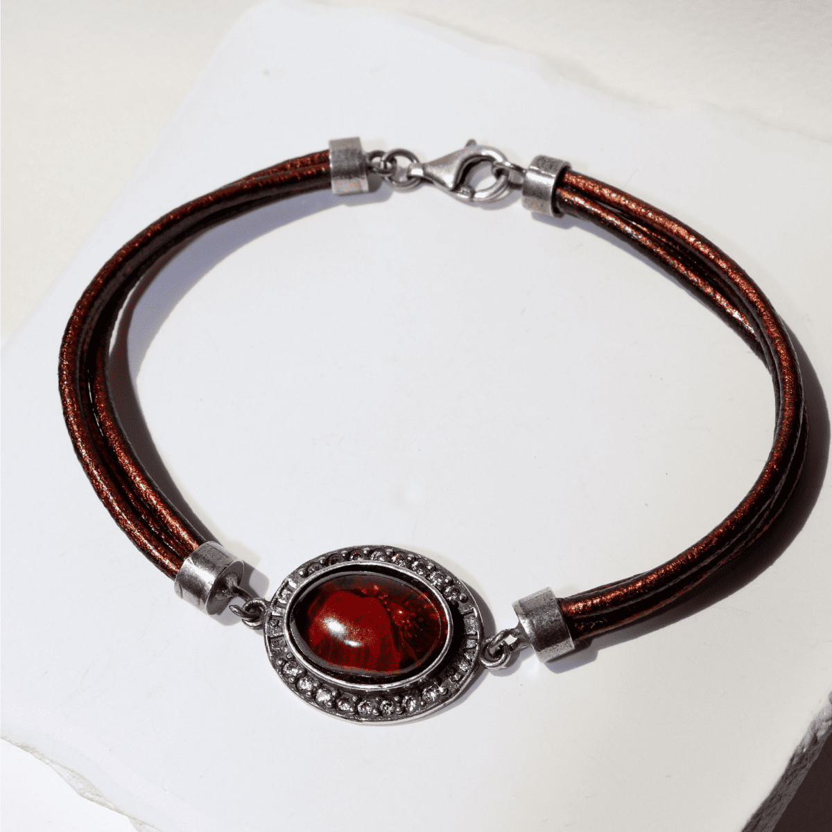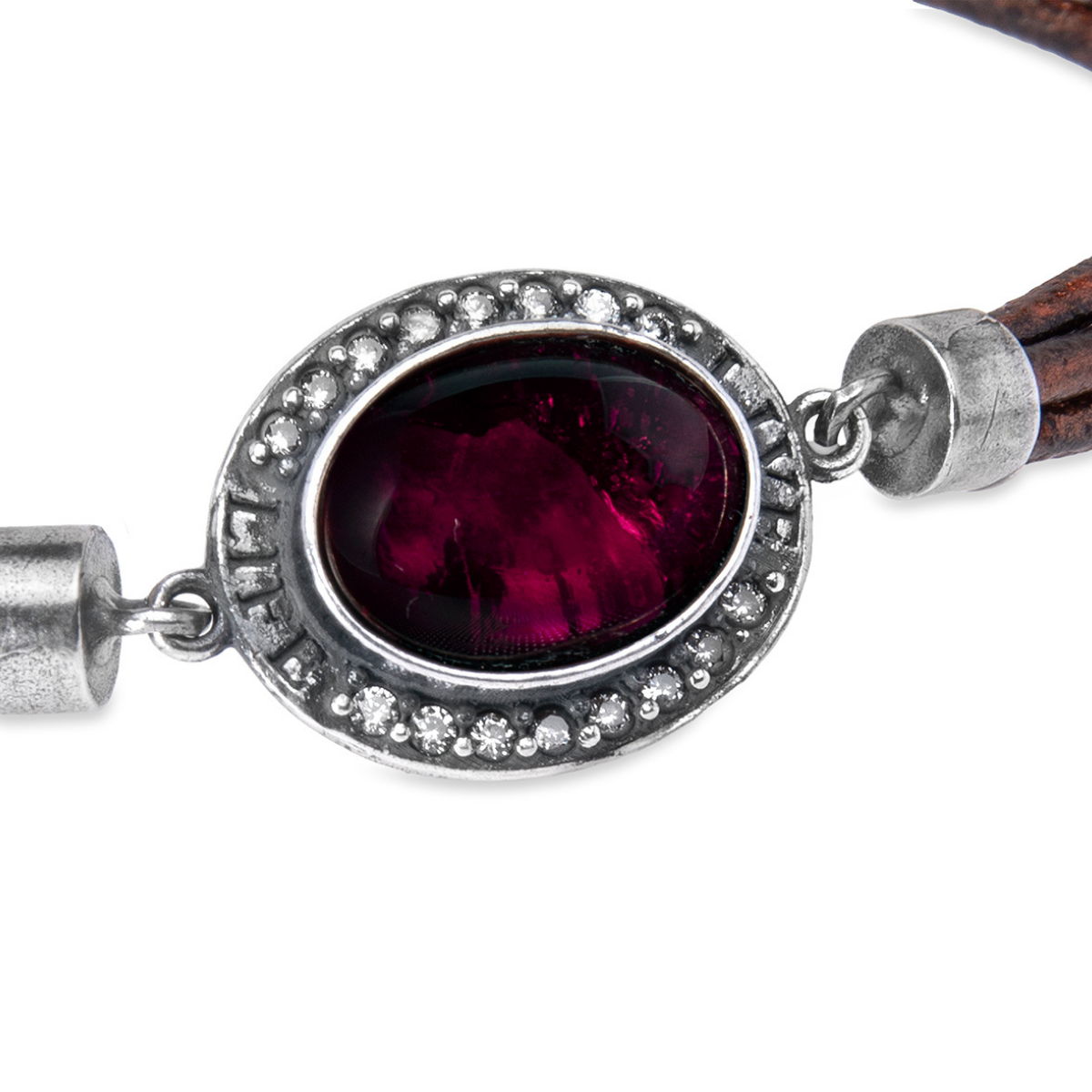 Kurai Damen-Lederarmband mit 925er Silbermitte und Granat- und Zirkonsteinen