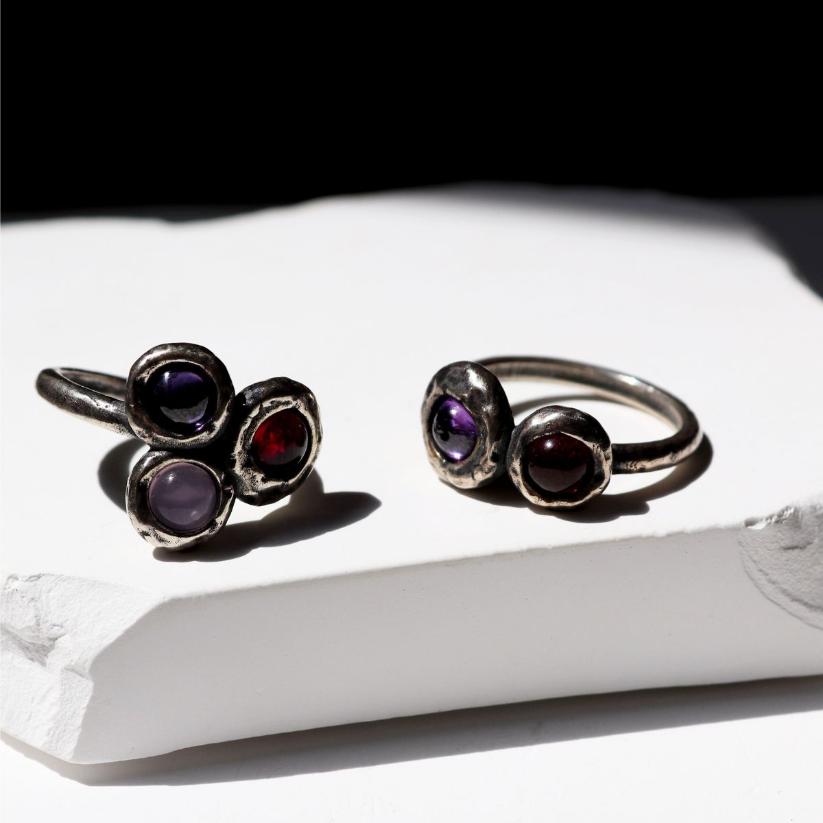 Kage Damenring in 925 Silber mit Rubin und Amethyst