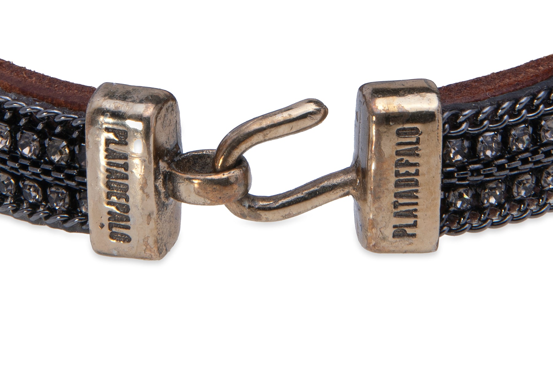 Flaches Lederarmband von Oris mit schwarzem Besatz und Glitzer. Bronzeverschluss.