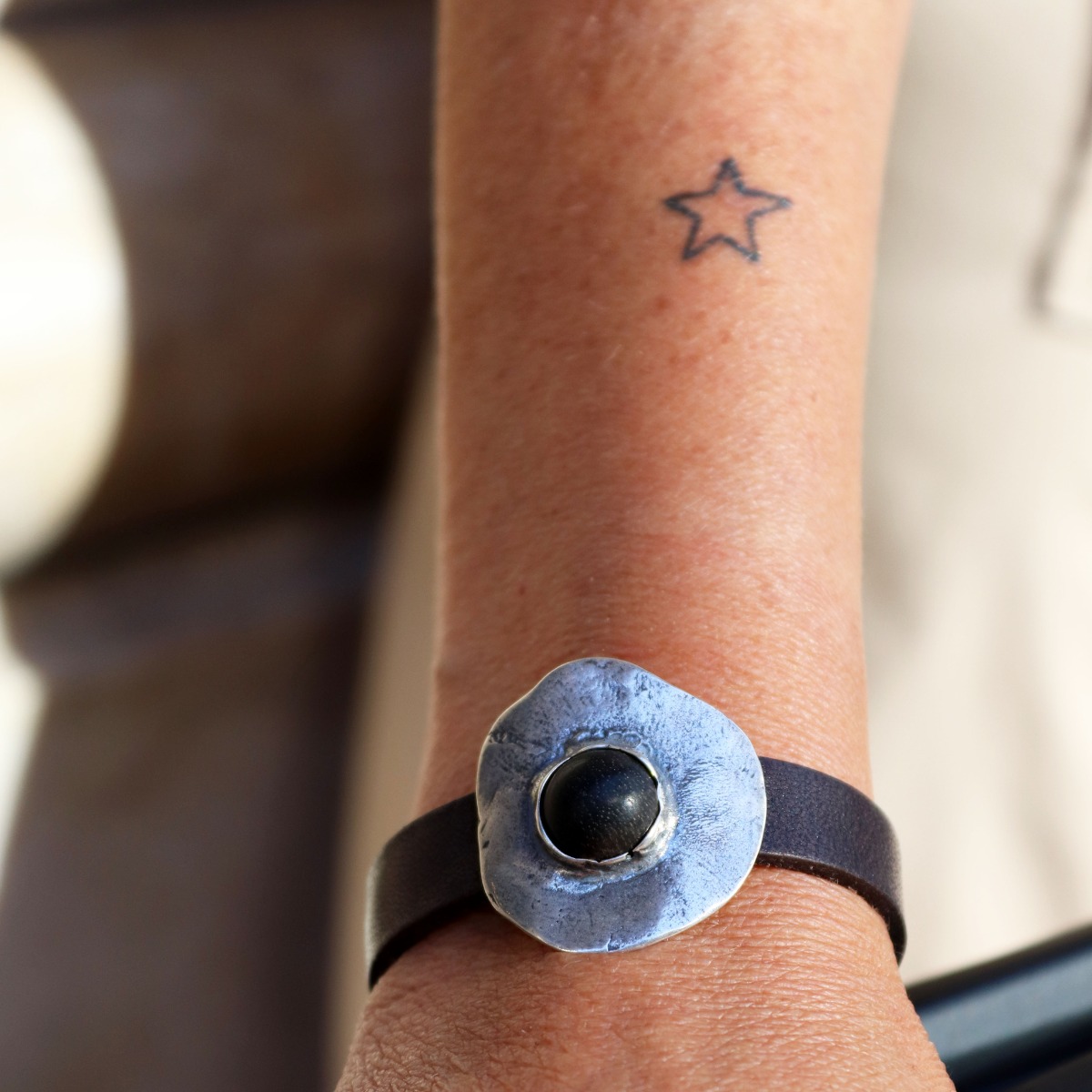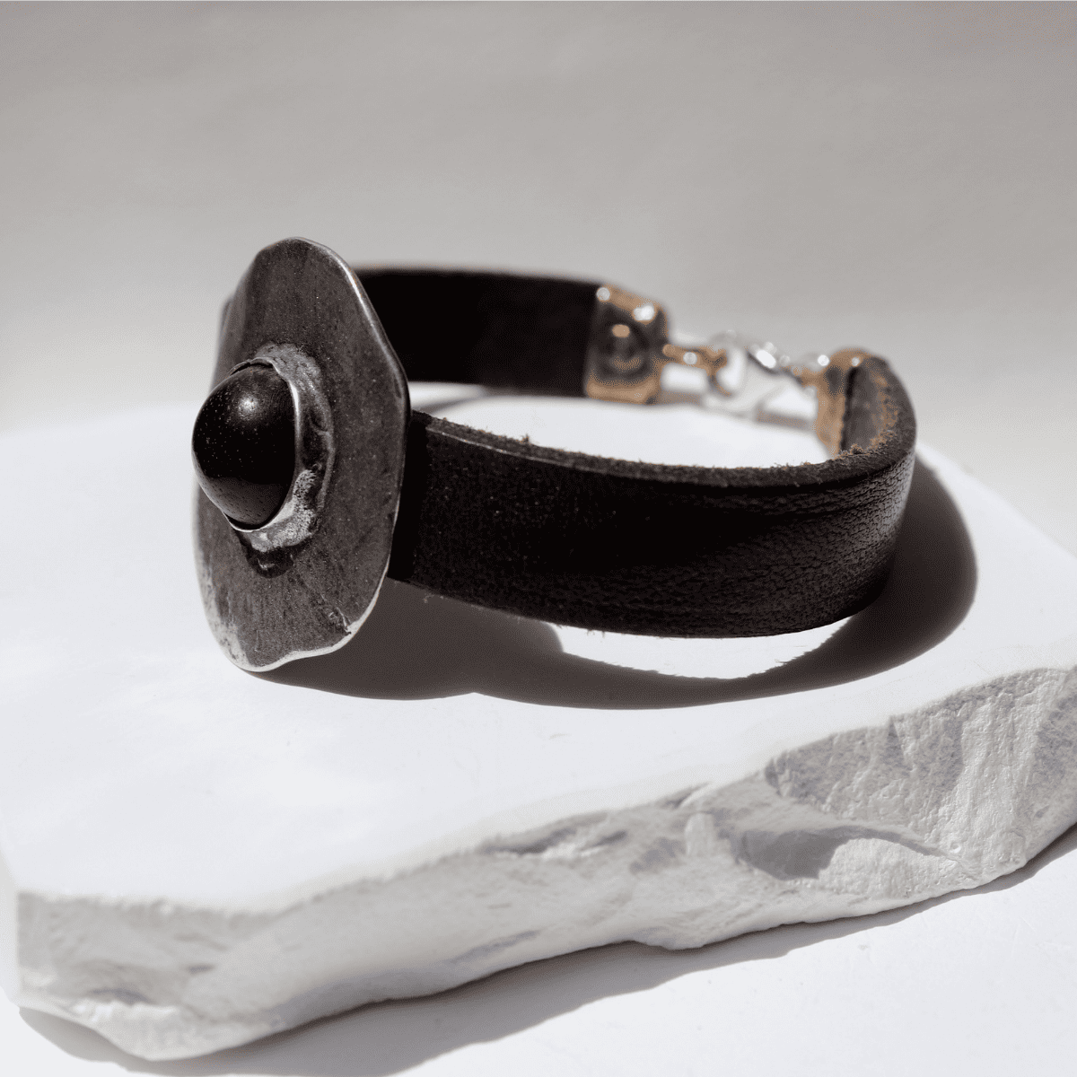 Hagane Damen-Lederarmband mit 925er Silber und Onyx-Mitte