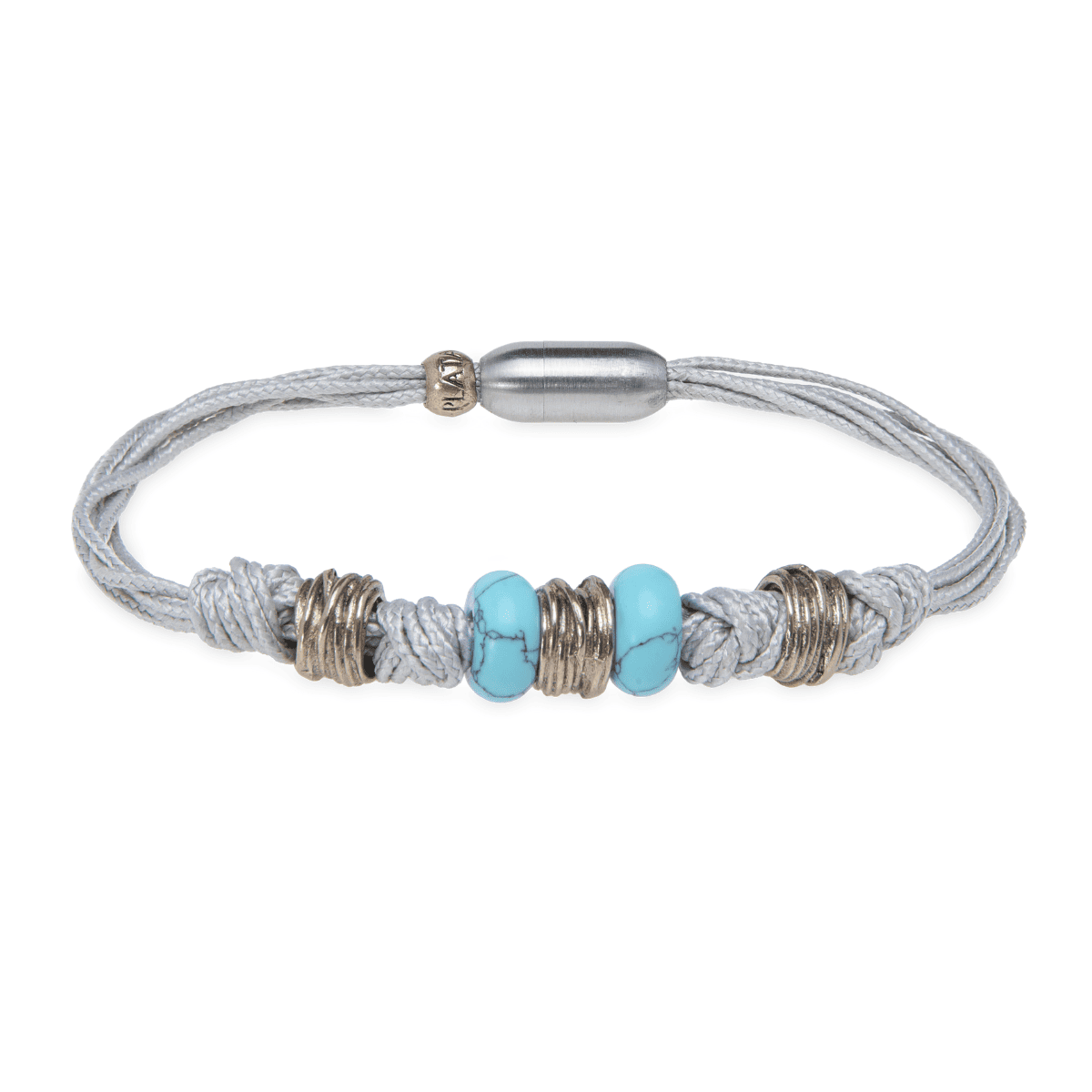 Dieses Armband besteht aus drei bronzenen Strängen, die einen erdigen Kontrast und einen Hauch von Bohème verleihen, während zwei leuchtend grüne Harze das Armband mit einem Farbtupfer betonen, der an die Lebendigkeit der Vegetation erinnert. Es ist ein vielseitiges Accessoire, das jedem Look Persönlichkeit und einen Hauch Originalität verleiht.