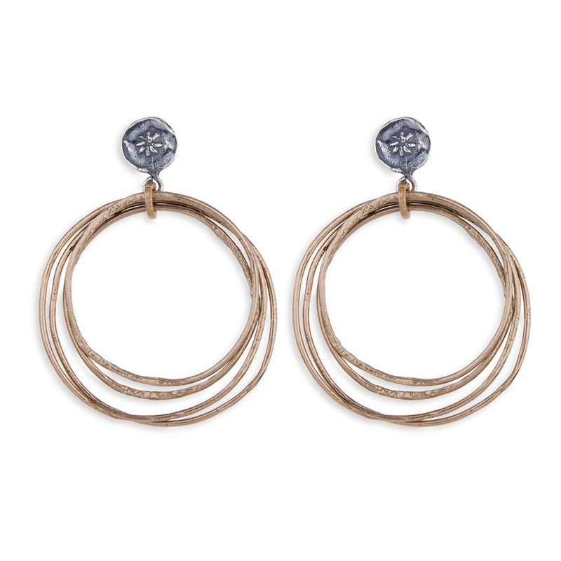 PLATADEPALO Creolen aus Bronze und 925er Silber. Durchmesser 4 cm und Länge 5,5 cm. Entworfen und handgefertigt von PLATADEPALO in Spanien.