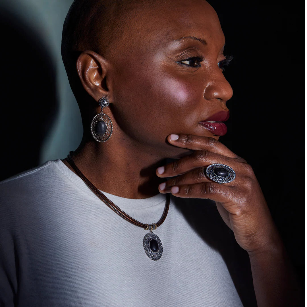 Diese bronzenen Ohrringe mit Besatz sind ein Zeugnis der Schmucktradition und Handwerkskunst. Jedes Stück wird mit Sorgfalt und Hingabe aus hochwertigen Materialien wie Bronze, 925er Silber und Ebenholz gefertigt. Nehmen Sie ein Stück Geschichte mit!