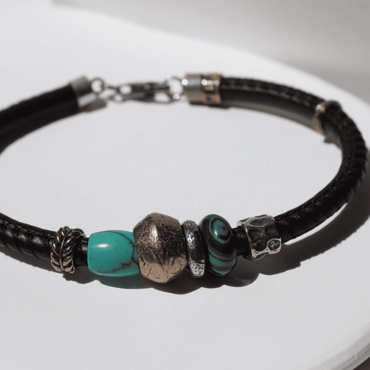 Jonetsu Damen-Lederarmband mit Bronze- und Türkisstücken