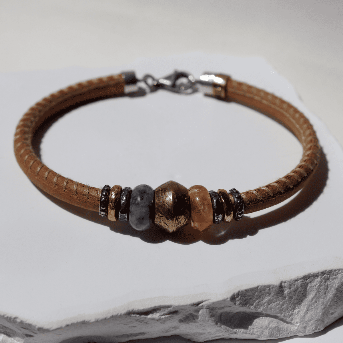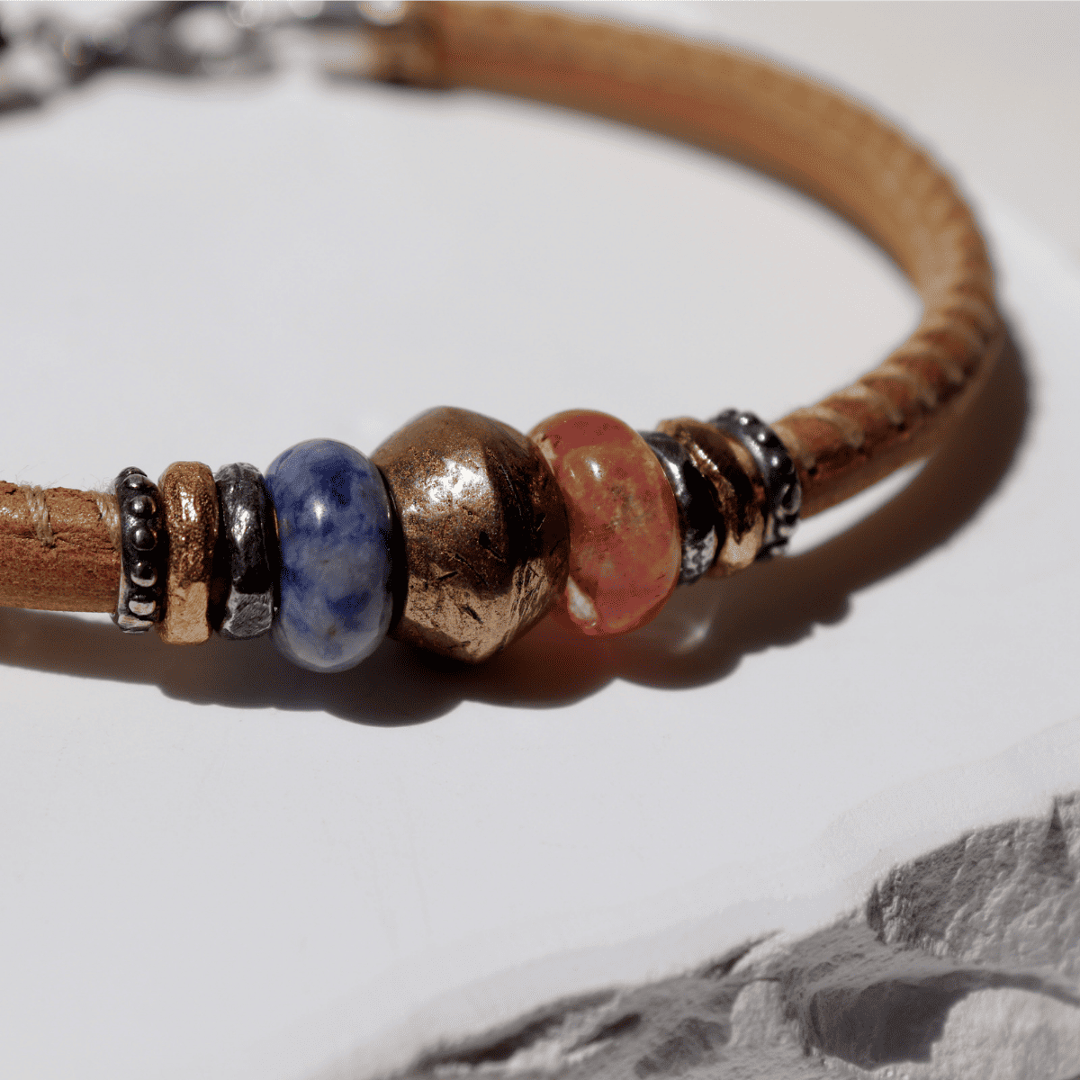 Yami Damen-Lederarmband mit bronzefarbenen und rosa Harzstücken