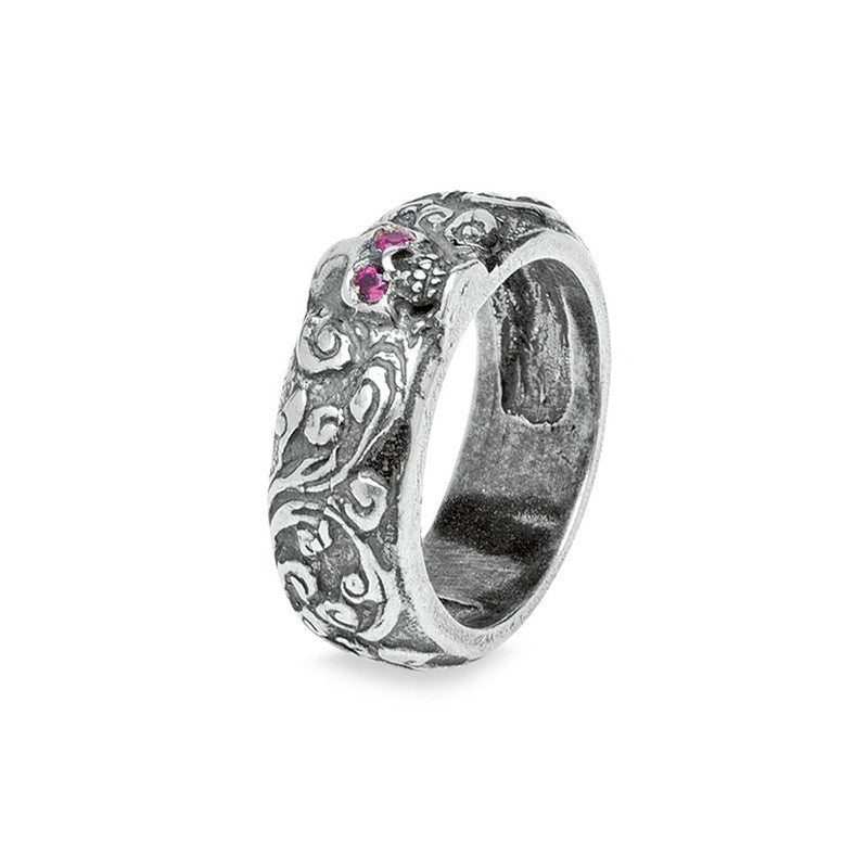 PLATADEPALO Totenkopfring aus 925er Silber und Zirkonen. Entworfen und handgefertigt von PLATADEPALO in Spanien. Dieses Stück wird für jeden Kunden von Hand gefertigt.
