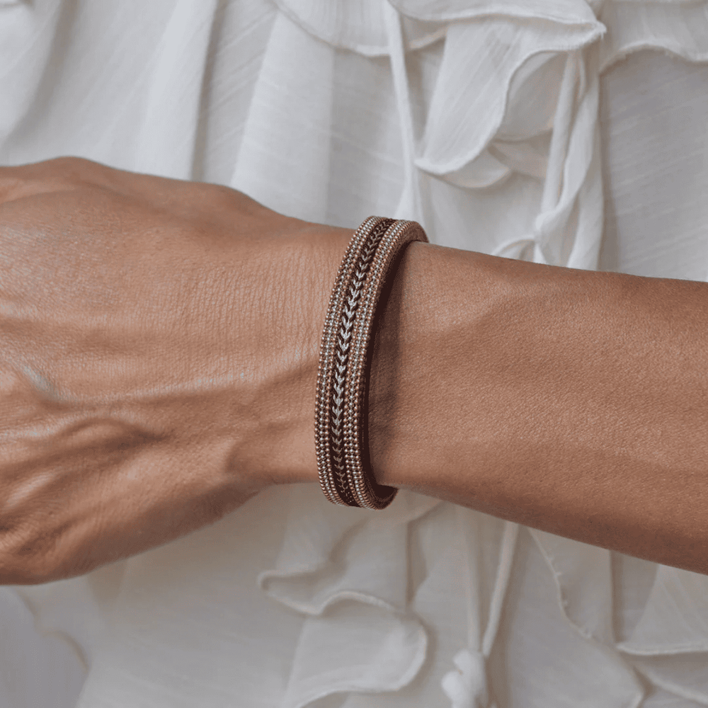 Omirea Women's Bracelet in Mink Leather and 925 Silver
