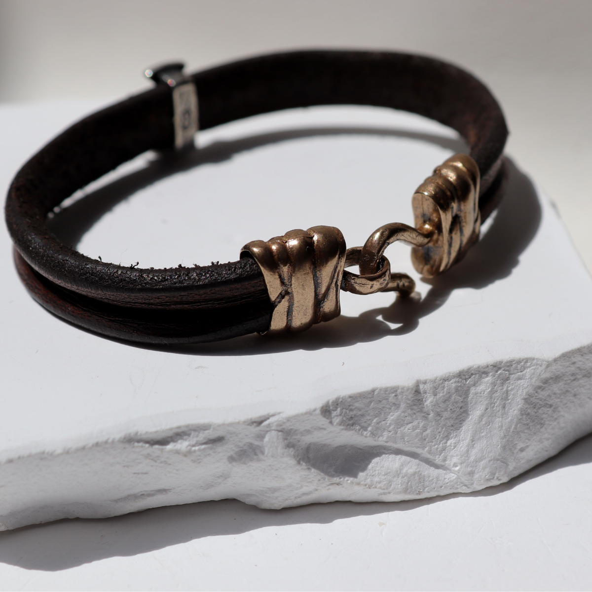 The Shibumi bracelet is a jewel that embodies quiet elegance and the power of the unpretentious. In Japanese, Shibumi (渋み) represents a refined, subtle, and deeply authentic aesthetic—the beauty that doesn't need to attract attention to be recognized. The leather provides texture and strength, while the metallic cross symbolizes conviction, faith, or purpose, depending on what each man chooses to project. This piece is designed for those who walk with serenity, strength, and a presence that is felt without being imposing.