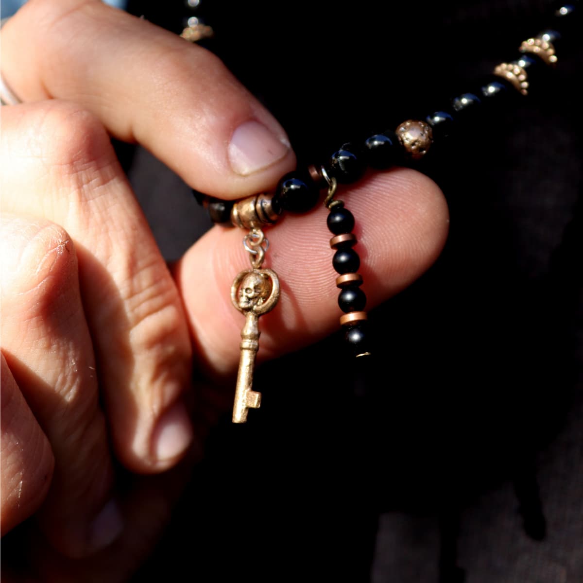 Collar Calavera Tánger llave de Ónix, Bronce y Plata 925
