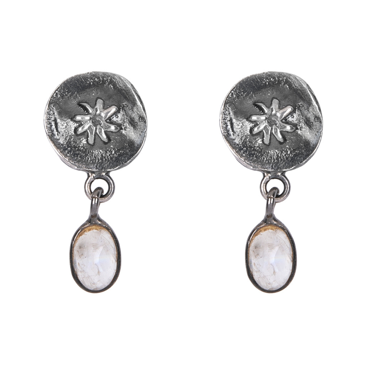 Tōmei women's 925 silver round stud earrings with a star and hanging stone.