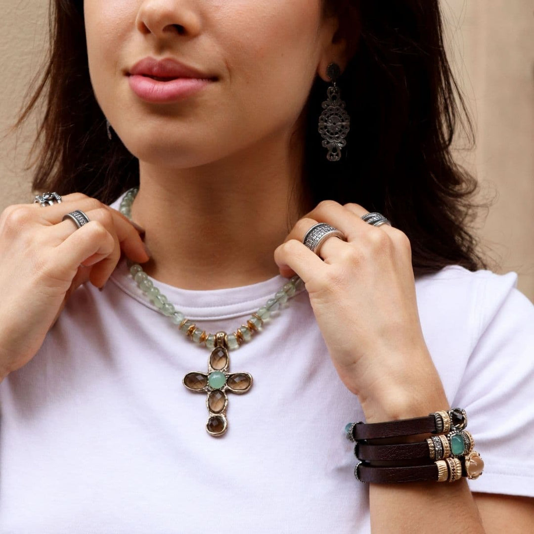 Women's necklaces in 925 silver, cubic zirconia, resin and leather, handmade in Spain, with unique designs that combine elegance, authenticity and style.