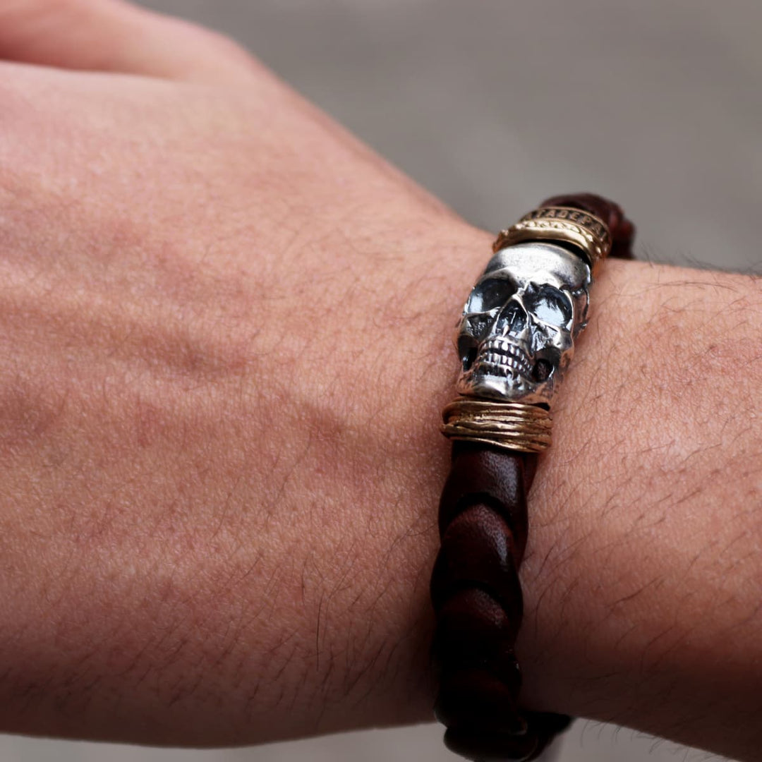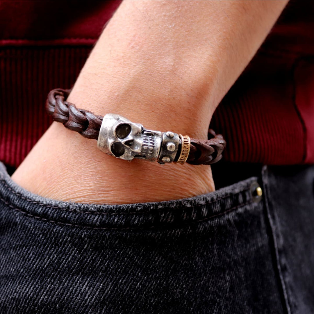 Pulsera de calavera para mujer y hombre en plata 925, 100% hechos a mano en España, con diseños únicos que reflejan estilo, libertad y personalidad.