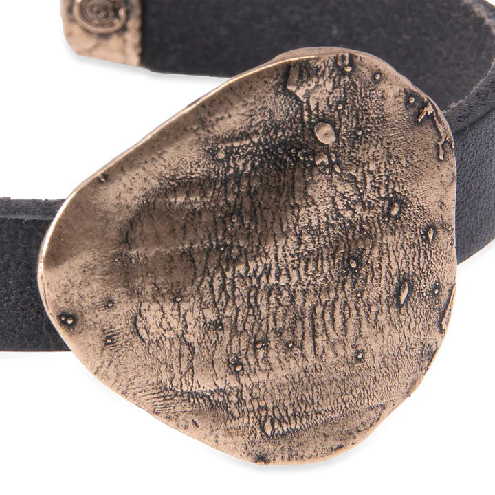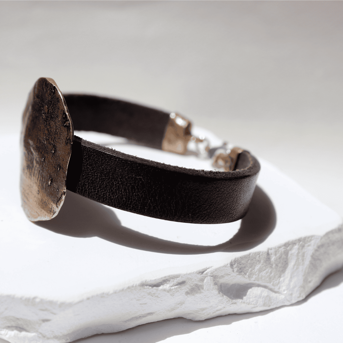 The bracelet Zenchi is a statement of balance and character. Inspired by inner clarity and conscious elegance, it combines the warmth of bronze with the sobriety of black leather to create a piece that conveys serene strength. Its minimalist and timeless design makes it a versatile accessory, ideal for women who value beauty with meaning. It is a jewel that accompanies with discretion and presence, like a silent gesture of wisdom and style.