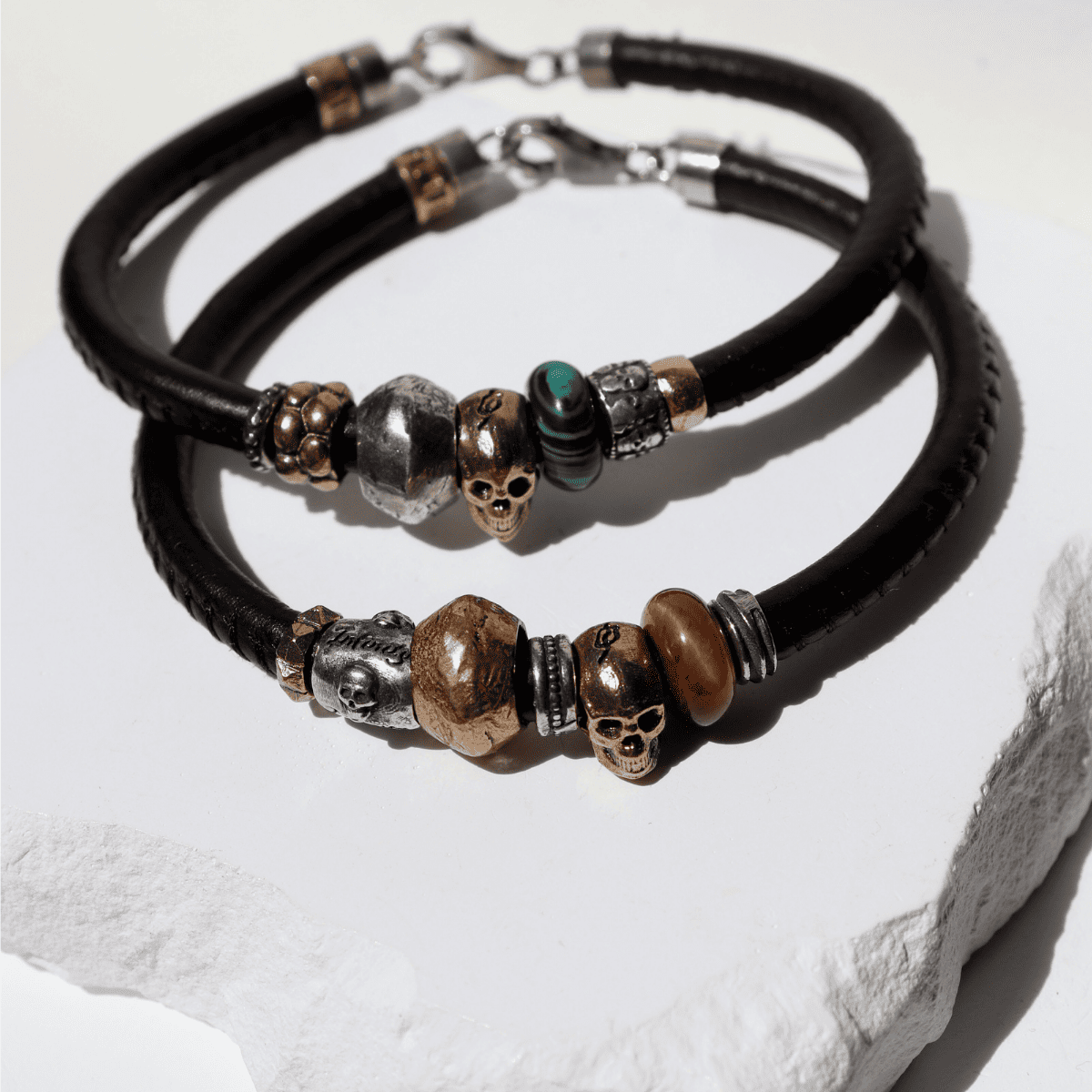 Material: 925 silver, leather, bronze, and resin