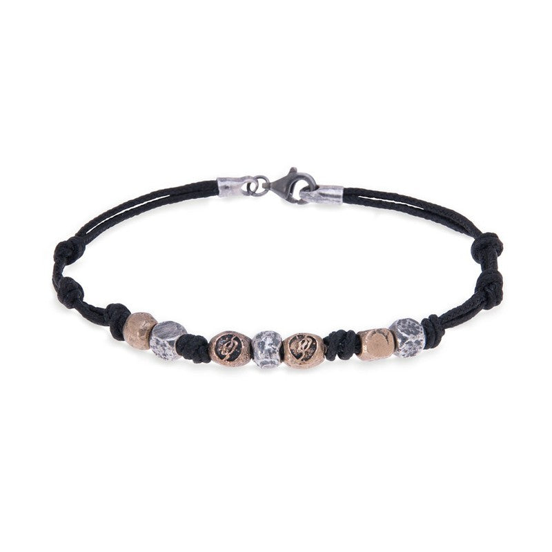 PLATADEPALO bracelet with 2mm black nylon thread knots and 925 Silver and bronze spacers. Designed and handmade by PLATADEPALO in Spain.