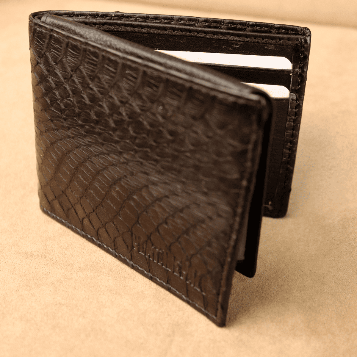 This men's wallet is a stylish and practical everyday piece. Made of high-quality black snakeskin, it features four card slots and one photo holder so you can keep your favorite cards and photos organized. Its compact size (10.5 x 8 cm) makes it ideal for carrying in your pocket.