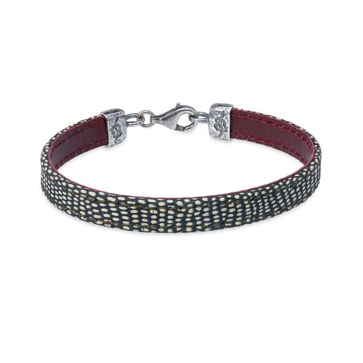This bracelet combines the natural texture of leather with a fun green polka dot design, creating a youthful and eye-catching accessory. The 925 silver clasp ensures durability and a touch of elegance. Perfect for adding a special touch to your everyday looks.