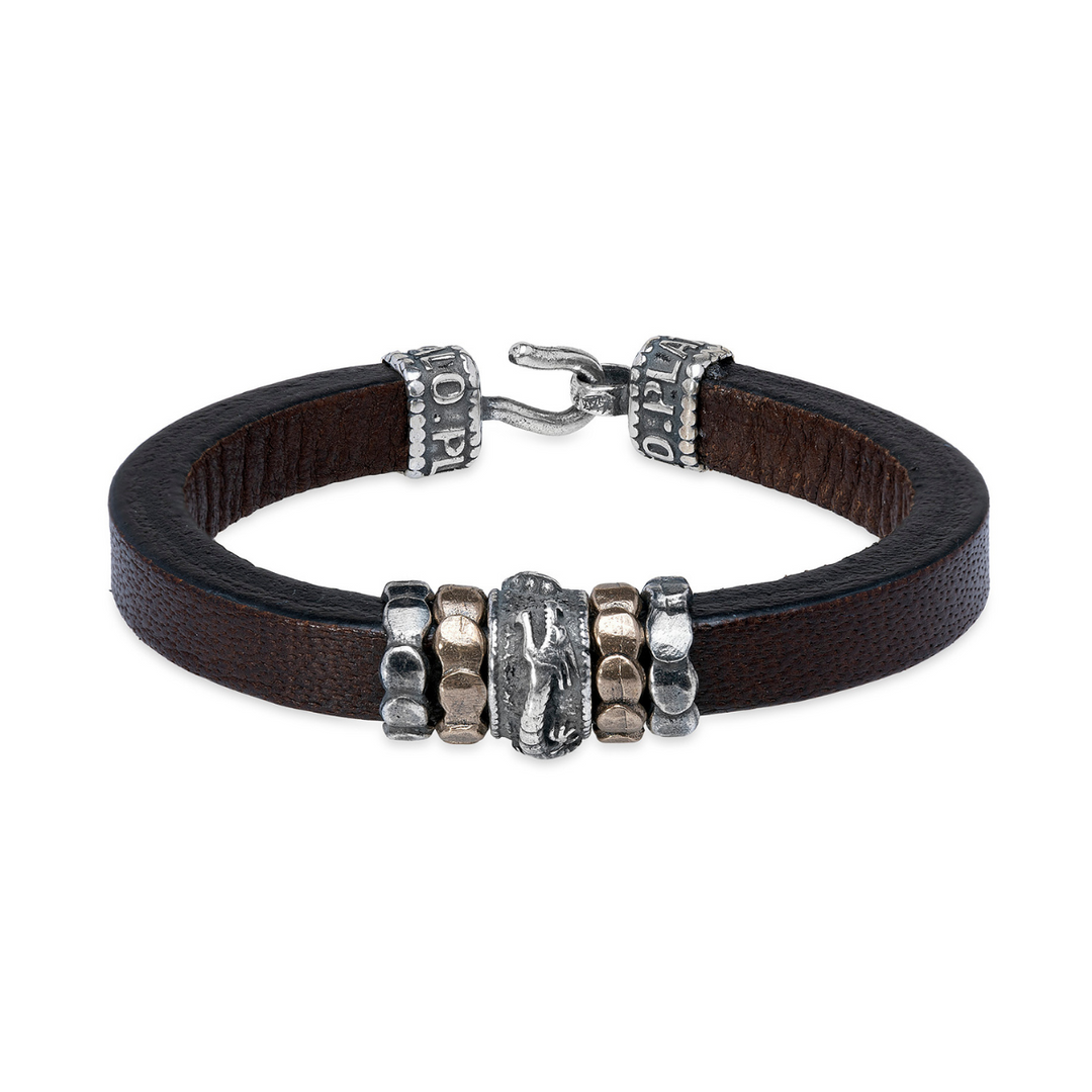 Combine style and personality with this dark brown leather bracelet. The 925 silver dragon-embossed spacers give it a unique and bold touch. Perfect for those who want to stand out!
