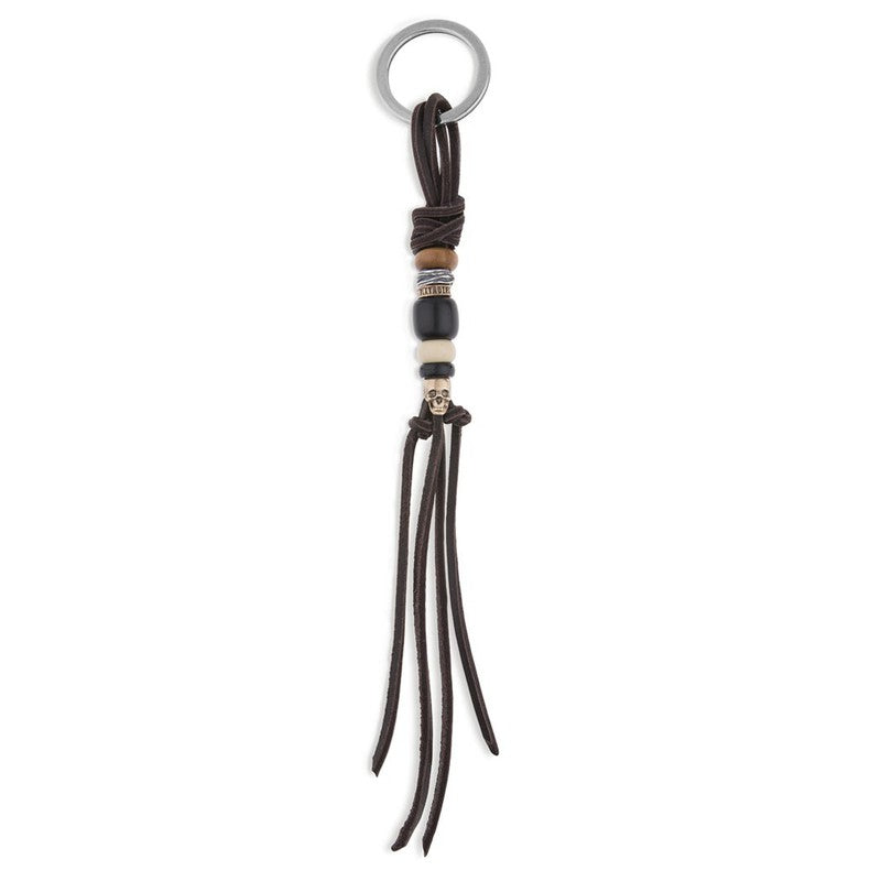 PLATADEPALO Skull leather keychain with bronze ring. 925 silver, bronze, resin and teak wood inserts. Designed and handcrafted by PLATADEPALO in Spain. This piece is handcrafted for each client.