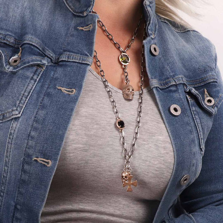 Ratun chain necklace with cross and skull