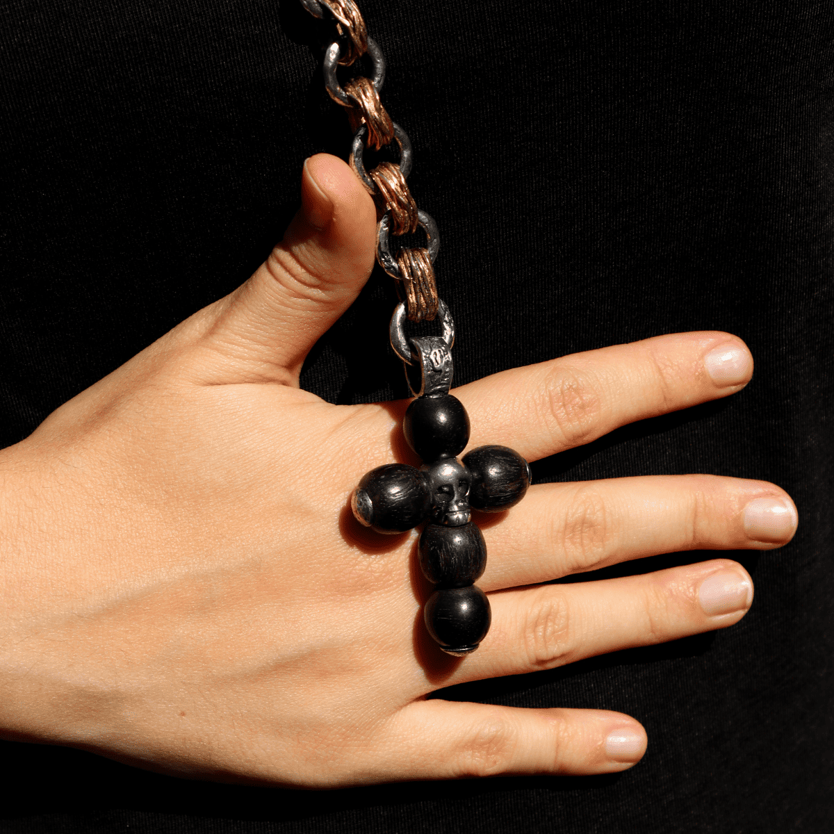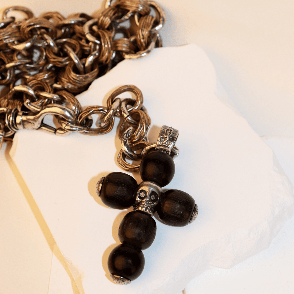 PLATADEPALO Skull necklace with chain made of 925 Silver and bronze. Pendant made of Ebony and Silver. Designed and handmade by PLATADEPALO in Spain. This piece is handcrafted for each client.