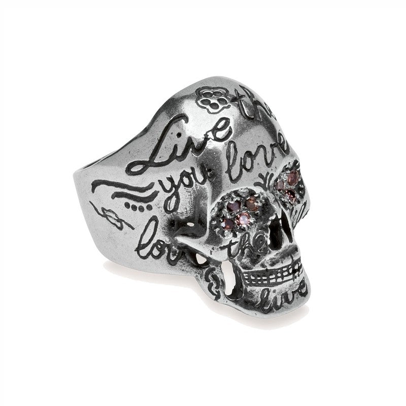 Anillo PLATADEPALO Skull realizado en Plata 925 y circonitas. Diseñado y hecho a mano artesanalmente por PLATADEPALO en España.