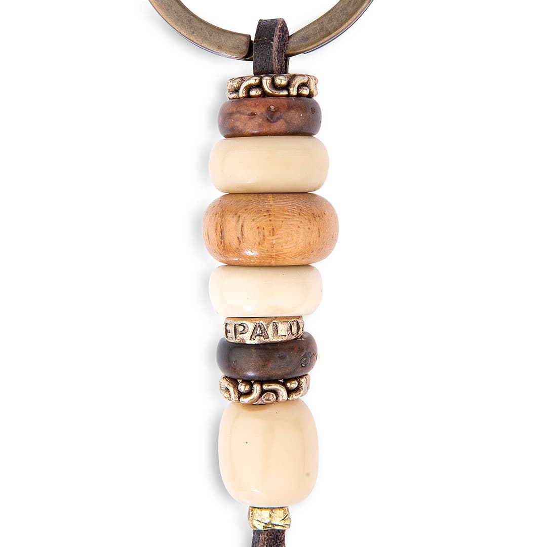 Este llavero unisex es ideal para ponerlo como complemento junto a tus llaves, como colgante en un bolso ¡o incluso de tu pantalón! Elaborado con cuero marrón, entrepiezas de bronce y resina de colores. Diseñado y hecho a mano artesanalmente por PLATADEPALO en España.