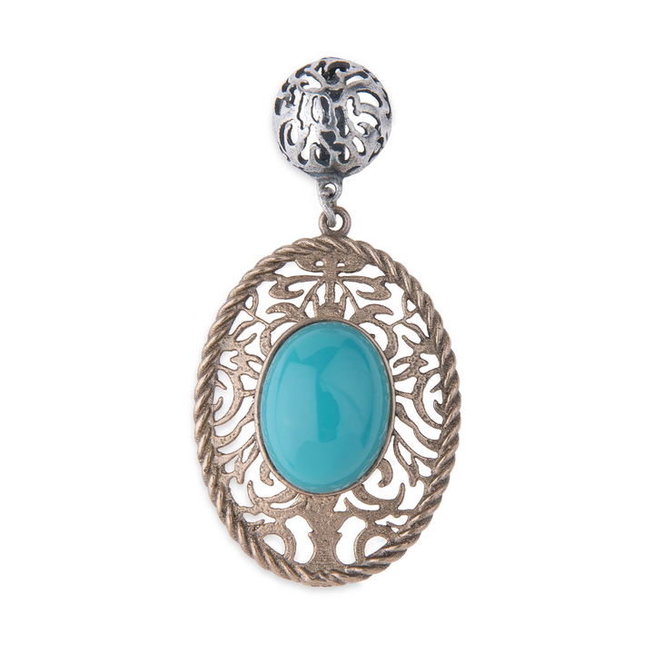 Estos pendientes ovalados con motivos de pasamanería son una joya única que te transportará a un mundo de ensueño. Están elaborados en bronce, plata 925 y piedra turquesa, lo que les da un brillo especial y una gran resistencia. Su diseño delicado y el brillo del bronce te harán sentir especial y radiante. ¡Lleva contigo un pedacito de magia!