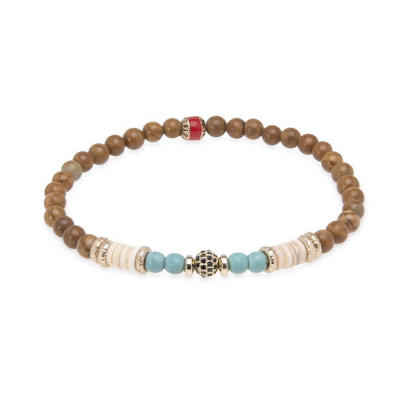 Esta pulsera combina la serenidad y calidez del jade madera y la energía revitalizante del ágata azul para crear una pieza única que refleja la belleza de la naturaleza. Diseñada y hecha a mano artesanalmente por PLATADEPALO en España.