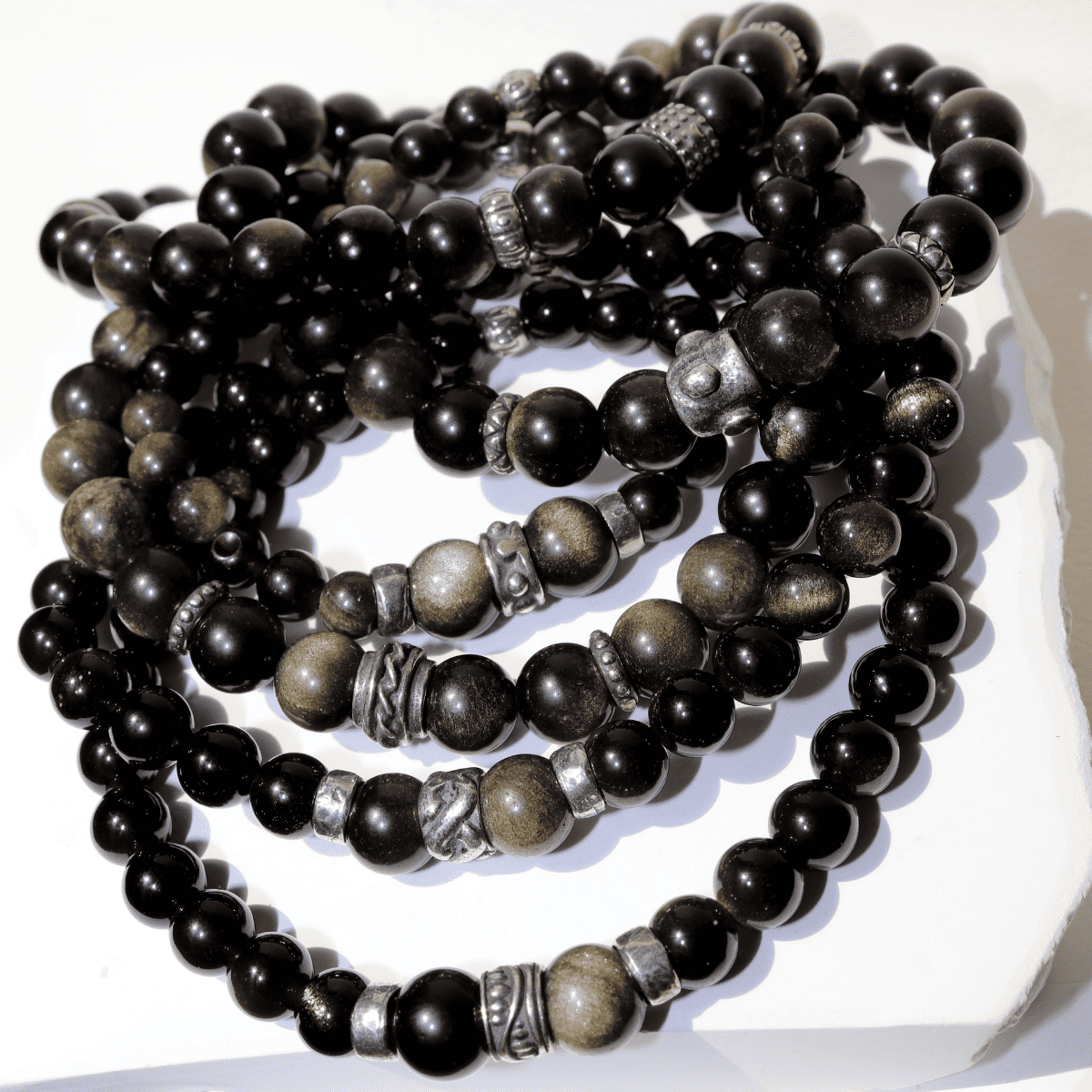 Pulsera de bolas de hombre Seishin de obisidiana y plata 925