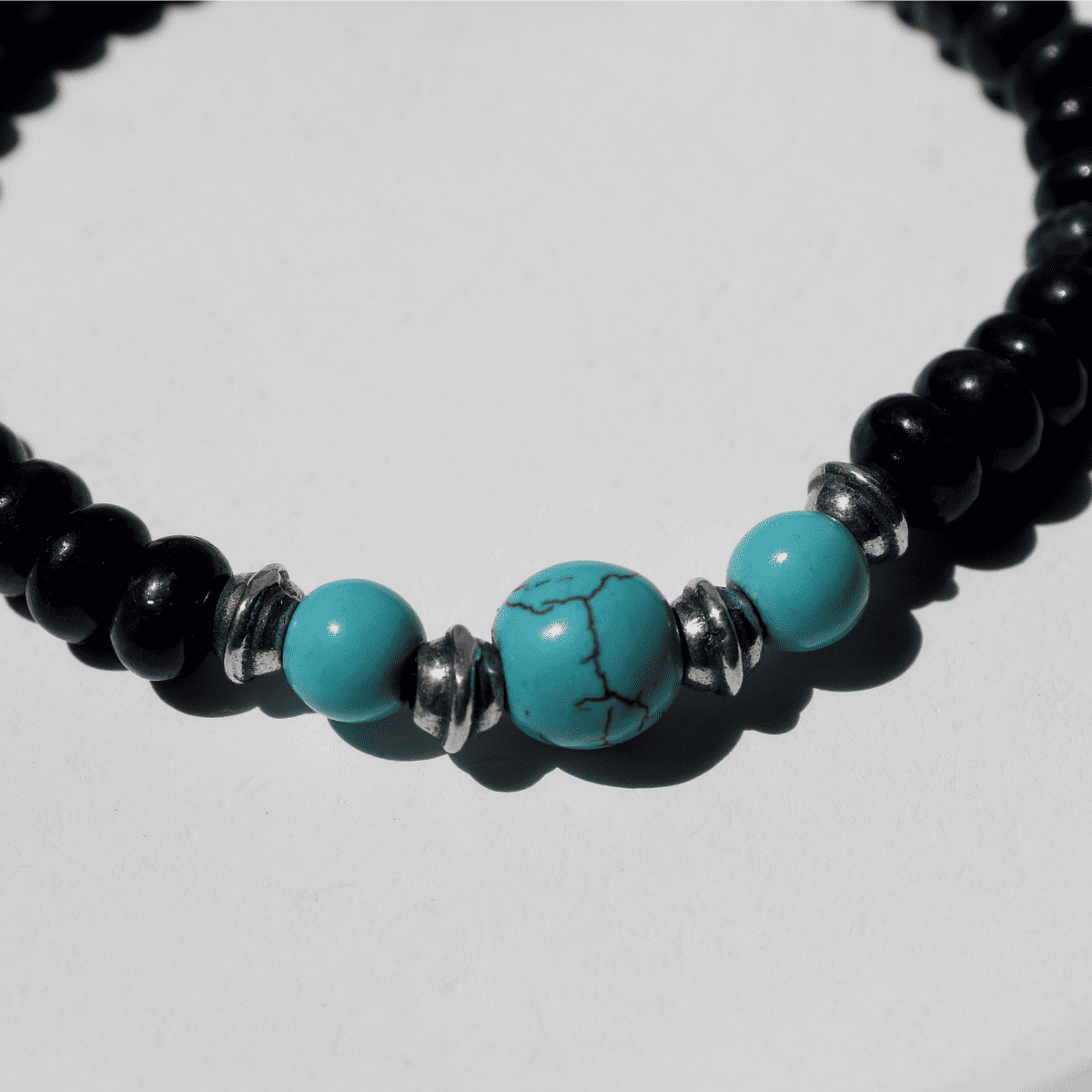 Pulsera de bolas hombre Soryu de lapizlázuli y turquesa con piezas de plata 925