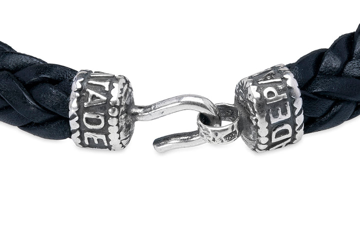 Pulsera para hombre Utsuroi de cuero negro trenzado y un cierre de Plata 925.