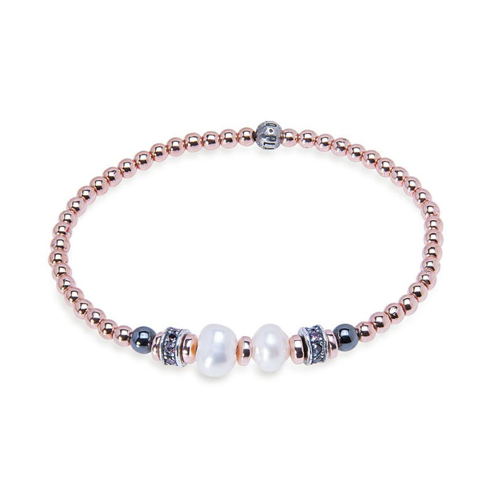 Elegancia, delicadeza y feminidad en una sola joya. Así es OLGA, nuestra nueva pulsera de bolas de hematite rosa. Decorada con dos perlas de agua, circonitas marrones y una bola de Plata 925 con el sello de la marca. Diseñada y hecha a mano artesanalmente por PLATADEPALO en España.
