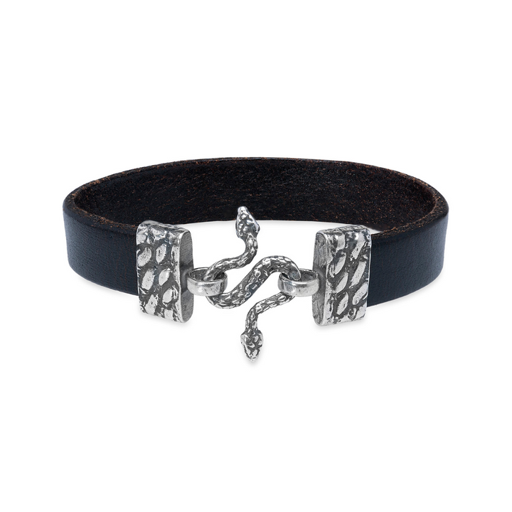 Esta pulsera es una pieza elegante y minimalista que combina la calidez del cuero marrón con el brillo de la plata 925. Un final de infarto con un enganche de serpiente muy detallista que da un toque único.